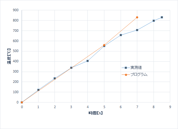 上絵付焼成 温度遷移 2022年2月11日 最終更新日時 : 2022年2月13日 aotsuki-392 前回の記事 前々回の記事 のときの焼成温度遷移をグラフ化してみました。 プラグラムよりは1時間ほど遅れて終了ですが、まあこれぐらいなら許容範囲。 前の記事でも書きましたが、これでは上絵の具がうまく焼き付いていなかったので、次回はねらし時間を30分ほどとって再挑戦です。